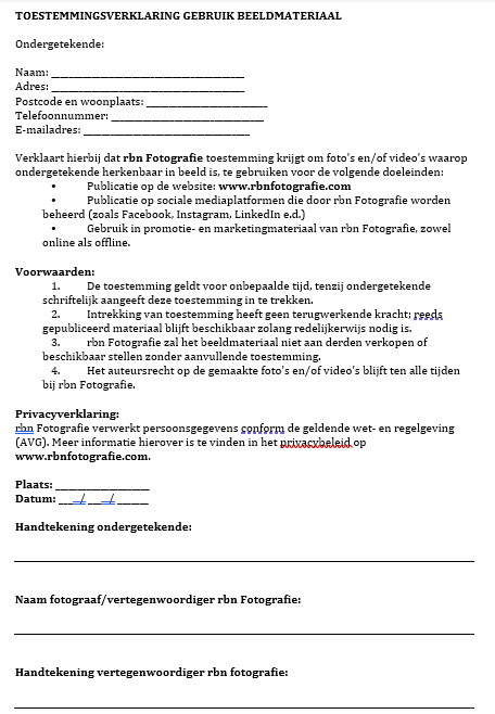 Soms vind ik het leuk om foto’s die ik tijdens een shoot maak te gebruiken voor mijn website of social media. Natuurlijk doe ik dat alleen met jouw toestemming. Daarom heb ik een toestemmingsformulier gemaakt.